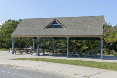 This pavilion offers picnic-table seating for up to 50 people. Amenities include a fire ring, barbecue grill, and dune access to the beach. Enjoy a cookout with friends only steps from the beach!