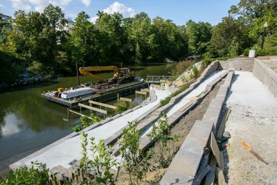 The dock at Grove Park is an exciting new addition to the town of Rehoboth. Its presence allows people to use the waterway for fun as well as for transportation. It has ADA-compliant walkways, kayak racks, and a fishing pier. The dock also serves as a stop for the Cape Water Taxi.